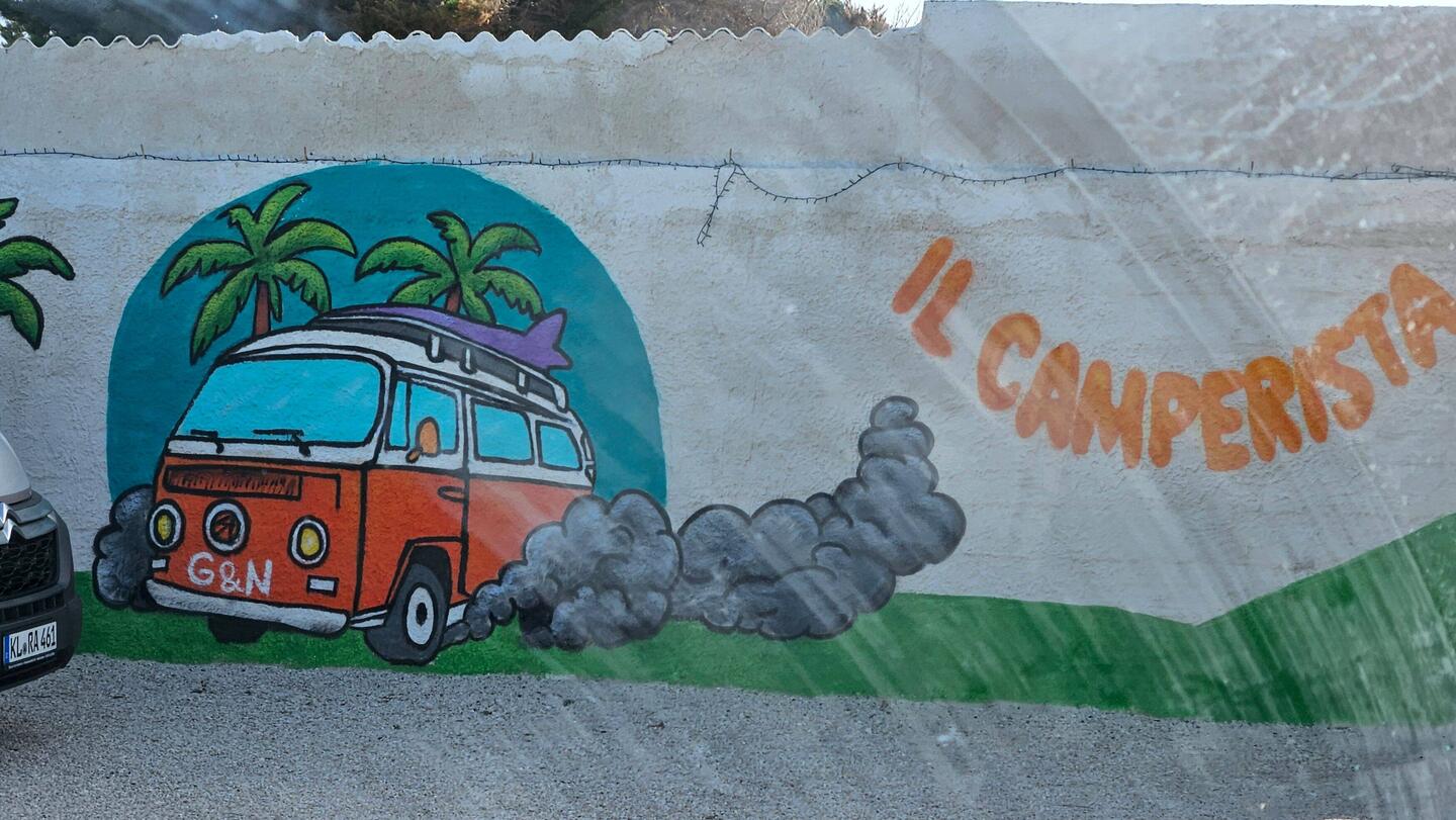 Heute stehen wir mal frei in dem kleinen Örtchen Tappeto oberhalb vom Strand. Der Wind bläst einige Wellen vor sich her.