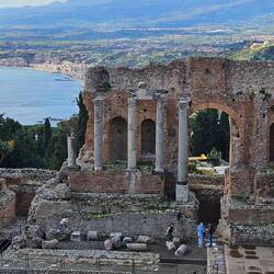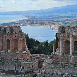 Vom griechischen Theater bei dem es heute noch Veranstaltungen gibt, hat man auch einen herrlichen Blick, das hatten wir gleich als erstes besichtigt.