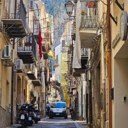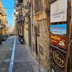 Cefalù, wir stehen direkt am Hafen. Der frühe Vogel hat den Platz.