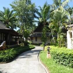 Ein ordentliches Hotel mit einer Großzügigen Außenanlage.