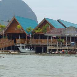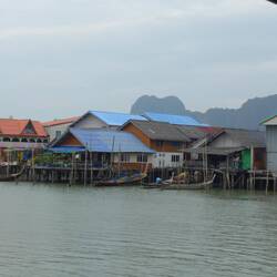 Stadt auf Stelzen, nur mit dem Boot erreichbar.
