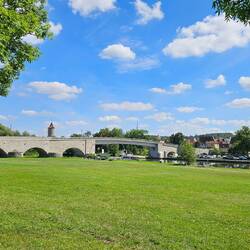 Direkt an der Friedensbrücke am Main liegt dieser Stadtnahe Stellplatz für 15 €