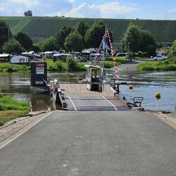 Mit der kleinen Fähre über den Main zur historischen Altstadt von Volkach.