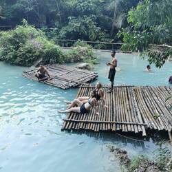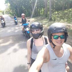 Wir fahren und fahren...die Strassen werden schlechter. Die Strassen werden schmaler. Weniger Häuser...und es wird immer steiler...bergauf und bergab...teilweise muss ich absteigen, da es aufgrund der nicht sooo guten Bremsen am Roller doch etwas gefährlich scheint. Berghoch drehen des Öfteren die Reifen durch, so dass einer von uns immer mal wieder ein Stück läuft während der andere den Roller heile hoch oder runter bringt. Wir sind uns sicher, dass das nicht der Weg ist, den wir hätten nehmen sollen. Aber egal. Wir geniessen die Einsamkeit und die tolle Natur. Teilweise haben wir riesigen Bambus, dicht bewachsen, am Wegrand. Dieser ist sicher 4-5m hoch. Es sieht sooo toll aus hier. Zwischendrin kommen uns mal wieder Einheimische entgegen und winken freundlich. Immer wenn wir Netz haben checken wir ungefähr wo wir sind und beschliessen einfach eine Runde zu fahren, irgendwann kommen wir schon wieder nach Coron. Leider zieht es sich immer weiter zu und wir müssen zwischendurch mal anhalten wenn ein Regenguss kommt. Irgendwann ist aber auch das egal und wir fahren weiter! Ich als Beifahrer wechsel mal ab und fahr mal bei Peggy oder Daniel mit und fühle mich bei beiden gleich wohl. Diese Schotterwege die wir gefahren sind hätte glaube ich nicht jeder Touri so grandios befahren! Danke an Euch 2!