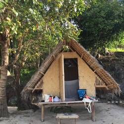 Das Wetter war leider sehr durchwachsen als wir starteten, was wir auch bezüglich der Wellen zu spüren bekamen. Etwa 4-5 Leute hingen kurz darauf über der Reeling und ich war nur dankbar macht mir das so gar nichts aus! Ich genoss die Fahrt trotzdem und auch das Salzwasser, was einem ins Gesicht peitschte störte mich nicht. Erst am Abend merkte man, wie salzig diese Fahrt war. Ich fühlte mich richtig paniert! Gegen Spätnachmittag wurde das Wetter besser und wir machten noch einen Stop zum Schnorcheln und Schwimmen. Am Abend wurden wir dann wieder via Kayaks an Land gebracht. Geschlafen wurde in einfachen Bambushütten. Dusche und WCs vorhanden. Ebenso ein Kiosk. Die Jungs an Bord bereiteten das Essen vor und brachten auch dieses via Kayaks an Land! Der Wahnsinn! Und ich muss sagen: Es war das beste Essen auf den Philippinen, was ich hatte!Read more