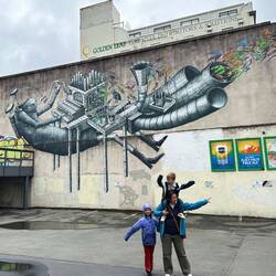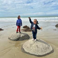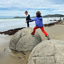 We stopped by downtown Dunedin before heading North, pretty run down and boring but some fun street art. Next stop were the Moeraki boulders.