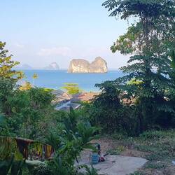 Dann mit dem Boot wieder aus Festland. Zum Mo ku Pier. 100 Baht. Dort werden wir von Tum in Empfang genommen. Er fährt und mit seinemもっと詳しく