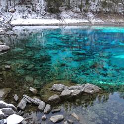 Am nächsten Tag ging es also früh in den Nationalpark. Da dieser sehr groß ist, muss man einen überteuerten Shuttlebus nutzen, um überhaupt erstmal in die Nähe der interessanten Aussichtspunkte zu kommen. Wir hatten gehofft, ab der Mittelstation aber möglichst viel erwandern zu können. Dem war leider nicht so, denn die meisten Wege waren gesperrt, aus uns nicht ersichtlichen Gründen, denn die Holzstege, auf denen die Wege verlaufen, waren alle intakt. Auch war eins der beiden Täler, die es im Park gibt, zum größten Teil gesperrt, wir vermuten, noch aufgrund der Erdbebens. Wie immer gab es keinerlei Informationen auf Englisch. So kam es, dass wir zu jeder einzelnen Station mit dem Shuttlebus fahren mussten, dann dort immer mit einer riesigen Gruppe chinesischer Tourist*innen ausgespuckt wurden, dann 15 min lang versuchten, nicht jemandem in sein oder ihr perfekt gestelltes Foto reinzurennen und dann wieder in den Bus stiegen, um das Ganze an der nächsten Station zu wiederholen. Oft wirkte es so, als wenn die meisten anderen Menschen dort nur für die Fotos hingekommen waren und sich niemand wirklich für die tatsächlich wunderschöne Natur interessierte. Denn obwohl wir beide ziemlich schlechte Laune hatten, weil aus unser erhofften Wandertour eine Tourimassenabfertigung geworden war, hat der Park wirklich einzigartig schöne Naturschauspiele zu bieten. Es gibt glasklare Bergseen, die so türkis sind, dass es schon fast unecht aussieht und wunderschöne Wasserfälle, die jetzt im Winter zum Teil eingefroren sind.