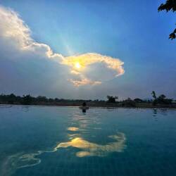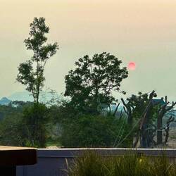 We enjoyed our night at the lodge complete with watching the elephants, a nice dip in the pool, and watching a hazy sunset and gibbons from the deck where we had dinner.