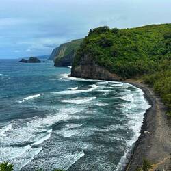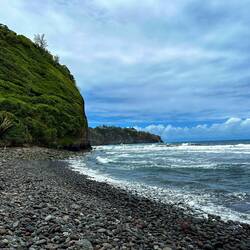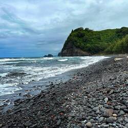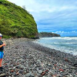 We started the morning with breakfast including massive pancakes, followed by a steep hike down to a black “sand” (mostly rock) beach. Stunning!