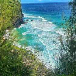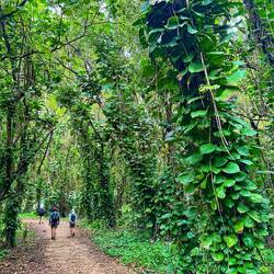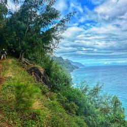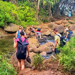 We hiked the *very* slick and muddy trail to Hanalapi’ai falls in Haena state park. It’s a permit only trail which keeps overcrowding to a minimum. Even with good gear we had lots of slips andLæs mere