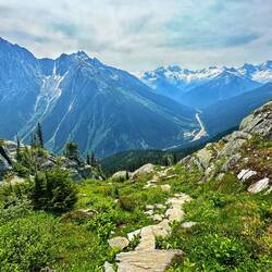 We spent a week in Revelstoke, British Columbia and it quickly became one of our favorite places on the trip. Quieter than Whistler, but still close to amazing hikes and the quaint downtown had several amazing restaurants and bars to check out. The smoke definitely set in while we were here, and combined with temperatures over 100 degrees most days it changed a lot of our hiking plans. The first full day we chose a very steep but short hike called Hermit trail in Glacier National Park (we didn’t even know before planning this trip that Canada has a Glacier NP, too!). The sign at the trailhead stated “this is the steepest trail in a park known for its steep trails” and boy was it right! The climb was brutal (4.4 miles round trip with 2730 ft of elevation gain) but the views were phenomenal. And we were glad we did it since the smoke came in much heavier the next day.