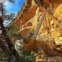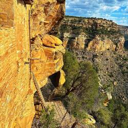 our reason for coming to Cortez was to explore Mesa Verde national park (#25 for us together on our USNP list). After a brilliant sunrise we headed into the park, best known for its cliff dwelling structures that the native Americans in the area built 700-1200 years ago. The three main ones to see have overlooks to see these dwellings along with others from afar, but you need a reservation for a ranger led hike to actually get close to them. Overall there are 600 dwellings within the park, which was very surprising to us. We tried like hades to get a permit to Square Tower House but the reservations were gone the second it opened for the day we were there. Luckily our second choice was available and we snagged our permits to explore Balcony House. We were extra lucky to get the first tour of the day (when you have the most peace and quiet in the structures) and extremely lucky to have one of two Indigenous Ranger interns. The fairly new program (this is its third summer) employs local indigenous people as interns to help lead conservation efforts and provide input on practices moving forward along with contributing historical information which previously was ignored or considered mythological. The ranger interns combine park interpretation, public speaking, and their cultural upbringing which made for a truly special tour.