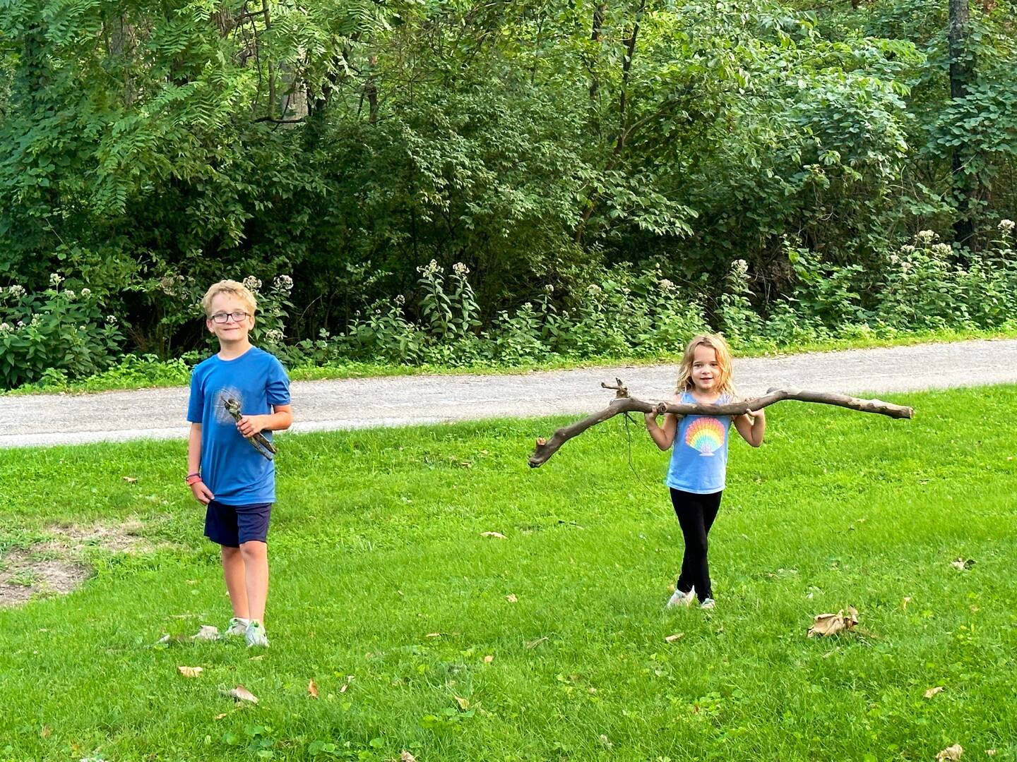 Jeff and the kids came over to cook hot dogs and s’mores over the fire then played at the playground and broke in the badminton set.
