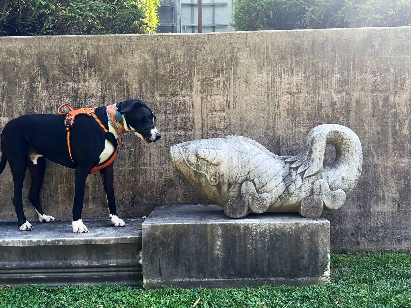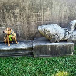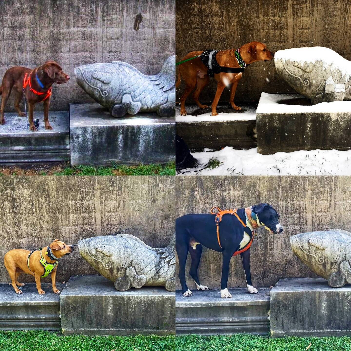 Started in 2010 and is still going 13 years later. Each dog gets their photo with the fish statue in the sunken garden ❤️