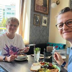 Was passiert, wenn man in seinem WhatsApp Status Bilder aus Leipzig postet? Eine frühere Kollegin, die auch gerade in Leipzig ist sieht es und man verabredet sich im Kaffee Katzentempel zumLeggi altro