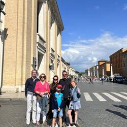 Tag 2: alle gemeinsam durch die Stadt, pantheon, Piazza Navona mit diesem Brunnen ⛲️ Fontana dei Fiumi, corona-Gasse und essen gehen bei viel Sonne (lecker Artischocke), Vatikan und bei leichtem Regen heim. Mama und Julia waren müde und haben zuhause gegessen, der Rest der Truppe ist tapfer in ein Restaurant mit brennenden Füßen.
