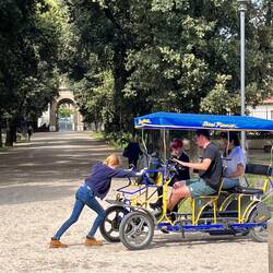 Tag 4: Ausflug in den Villa Borghese Park mit den Mädels und mama, Rudern, Kaffee und Eis im Park, Fahrrad fahren (im 4er Rad) gemütlich zurück laufen an spanischer Treppe vorbei, abends Dinner im Restaurant Hosteria Romania.