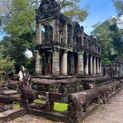 After Angkor Wat, we went on to visit another 4 temples in the area. The Bayon temple of the smiling Buddhas has unfortunately closed it’s top level, preventing us from getting up close and personalLeia mais