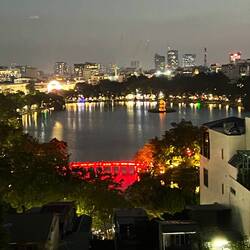 We walked around the Old Quarter, using Lonely Planet walking tour and saw many beautiful small temples. We also visited the Temple of the Returned Sword, where according to a legend, the emperor wasLeia mais