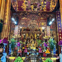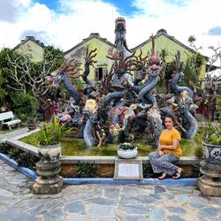 In the morning we were graced with the great weather, as the promised rain failed to show up! We took a boat tour to the main pagoda of Hue, and walked in the peaceful ground of its active monasteryLeia mais
