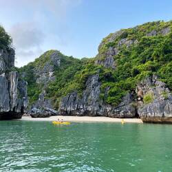 In the morning we took a speed boat ride to the Cat Bo Island - the only inhabited island in Halong Bay. We rode the electric cart (as opposed to biking) and visited the village, which was a lostLeia mais
