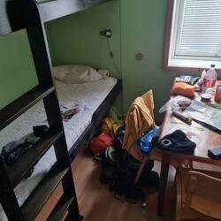 Als ich hier ankam war ich jedoch noch optimistisch: es sah alles einladen, freundlich, familiär aus. Die erste Finte mit der Küche traf mich zwar hart, aber ich mach schon irgendwie das beste draus. Dann bekam ich mein Zimmer zugeteilt und stiefelte die Treppe empor. Im 3. Geschoss dann mein 6 Bettzimmer. Bereits die Rucksäcke und Taschen verraten mir: "du wirst oben schlafen". Habt ihr mal bei einem Doppelstockbett oben das Bettlaken drauf gemacht? Nein? Es hört sich genauso spaßig an wie es ist. Als diese Hürde jedoch auch genommen ist, beziehe ich meinen Schrank, sodass ich mit Ordnung aufwarte und alles Finde. Meinem Regal hat sich seit dem in einen Vorratsschrank verwandelt.