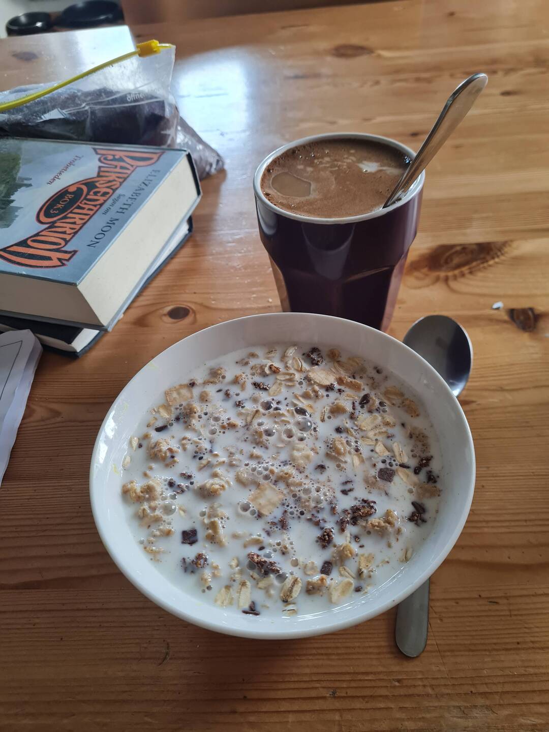 Mein Frühstück bestand aus einem Müsli mit Milch und einem Kaffee. Nun geht es raus ins graue, mal sehen was die Abisko-Gegend so zu bieten hat...👋Read more