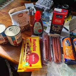 Gleiches galt auch für ihr Essen. Plötzlich marschierte Michel mit einem Grillrost heraus, daß er schon mit Hot-Dog Würstchen bestückt hatte. Das Feuer wurde neu entfacht und es ging ans Brutzeln der Würste. Drinnen war alles vorbereitet für Hot-Dogs. Es gab Käse, Zwiebeln, Salat, Ketchup und Brötchen. Der Ofen brannte ebenfalls schon und wurde professionell von Michel in Betrieb gehalten.