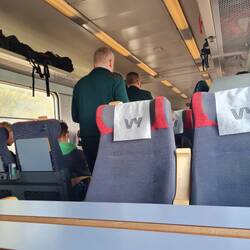 Die Ferse tat nicht weniger weh als am Vortag, nein, das Rennen (fast walk) hatte eher eine Situations verschlechternde Wirkung. Ich Texte Olof, das ich einige Minuten später da sein würde, was mit einer freundlichen SMS quittiert wurde. Dann humpelte ich AFAP (as fast as possible) meines Weges und traf nur 7 Minuten verspätet ein. Eine erneute SMS an Olof zwecks meiner verspäteten, aber dennoch geglückten Ankunft, hatte sein Erscheinen und das seines Freundes Robert an der Rezeption zur Folge. Meine vielen Entschuldigungen waren fast überflüssig, denn alsbald war man tief in Gespräche verwickelt. Zum Beispiel darüber, das schwedische Züge eine extra Kippfunktion aufweisen, sodass der Zug sich in den Kurven entsprechend seiner Umgebung verhält, ohne das man die Schienen kippen muss. Das wiederum gewährleistet, dass die Motionsicknes, auch bekannt als Seekrankheit der Reisenden, abnahm.
