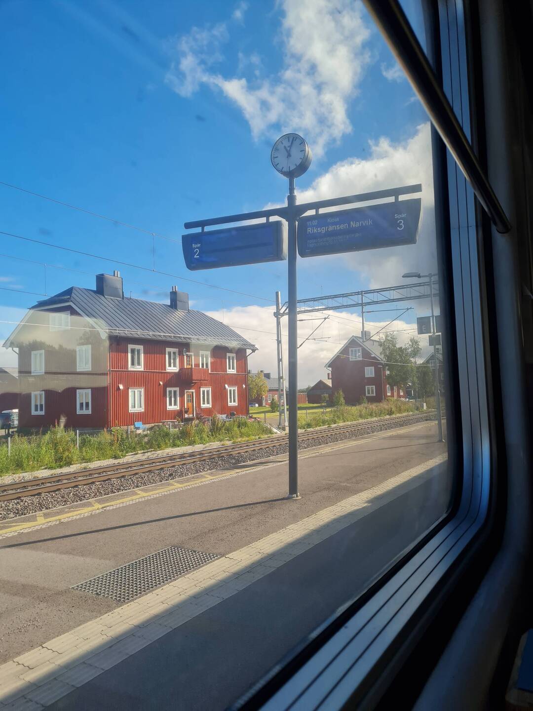 Leicht verspätet, aber noch im Rahmen, erreicht der Bus 300 den Haltepunkt. Der Busfahrer fährt den Bus bis zu einem Busknotenpunkt, an dem erstmal Schluss ist. Schluss für 30 Minuten. Mit uns warten, tut ein weiterer Bus, aus dem, ihr werdet es nie erraten, der Mann, den ich mit seiner Schwester (die in Gummistiefeln wandern war) am Fluss in Abisko getroffen habe. Er steigt nun also mit seinen Eltern und und ohne seine Schwester aus den anderen Bus...Zufälle gibt es....