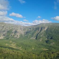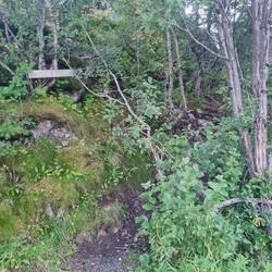 Endlich den Pfad erreicht, ging es zwar nicht weniger steil oder weniger mühsam zu, aber es ging nicht durch das Dickicht un entlang gekennzeichneter Wege... was die Schilder Angaben, die auf diese Pfade zeigten, blieb meist ihr Geheimnis; irgendeine Kilometer Angabe, ein Norwegisches Wort für das Objekt wo sie angeblich hinführten und dann die Bezeichnung "very demanding Path".
