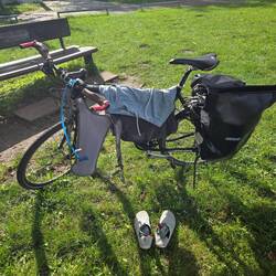 Nur um überhaupt mal einen Eindruck davon zu bekommen, worauf ich mich da eigentlich eingelassen habe, kam mir heute spontan die Idee, einfach mal alle Sachen in die Fahrradtaschen zu packen und eine kleine Runde rund um Schwerin zu drehen.