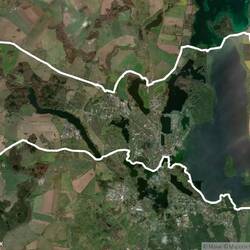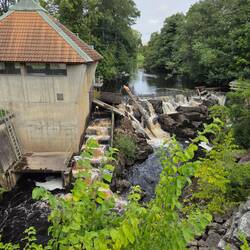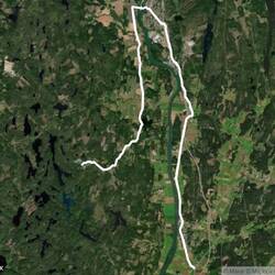 Während der Fahrt schaute ich mir schon mal auf Komoot die Strecke an, die ich ab Lödöse noch zurückzulegen hätte. Hier machte ich eine fatale Entdeckung: Zwar liegen Lödöse und Arboskogen (das Ziel) auf einer Höhe, nur fließt dazwischen ein nicht unerheblich breiter Fluss. Die einzige Brücke über diesen Fluss befindet sich 11 km nördlich von Lödöse. Somit sah die Streckenführung vor, zunächst 11 km flussaufwärts zu fahren, um anschließend 15 km flussabwärts zurückzulegen.