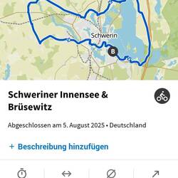 Angetrieben von meiner Vorfreude auf Schweden und meiner generell guten Laune, ging es zunächst Richtung Mueß, Lezen und Rampe – sprich einmal um den Schweriner Innensee – bevor mir auf Höhe Seewarte die Idee kam, meine Runde bis Brüsewitz auszuweiten, um meiner Schwester Nina einen Überraschungsbesuch abzustatten. Musikalisch wurde dieser "Umweg" von Provinz untermalt, da ich Marie versprochen habe, für das anstehende Konzert diesmal ausreichend textsicher, bei mehr als der Hälfte der Lieder zu sein.