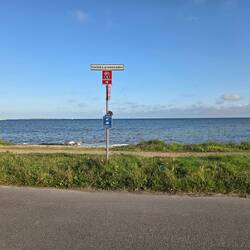 Jedenfalls ging es danach wohltemperiert und für alle gut sichtbar weiter entlang der Landstraße. Kurze Zeit später lag die erste Landzunge auch schon hinter mir, allerdings begannen meine Kräfte etwas zu schwinden. Viel mehr meldete sich der Rücken zu Wort. Etwas Gymnastik auf dem Rad verschaffte geringfügig Besserung, ließ die Zweifel aber nicht gänzlich schwinden, ob ich die Etappe unter diesen Umständen schaffen würde. Im Hinterkopf schon die Gewissheit, dass ich bereits auf die zweite Landzunge zu hielt, die ebenso wie die erste, mit ordentlichen Gegenwind aufwarten würde.