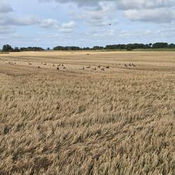 Leider wurde es landschaftlich nicht unbedingt schöner, als auf der ersten Hälfte. Häufig ging es entlang von Straßen, über Feldwege, auf denen man Traktoren und Mähdreschern ausweichen musste, oder entlang der Schienen, auf denen recht regelmäßig Schnellzüge vorbeipreschten. Nur selten kam man in den Genuss eines Blicks auf das Wasser und wenn, war dieser meistens getrübt durch riesige Imdustrienauten oder ähnliches.