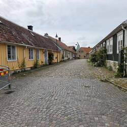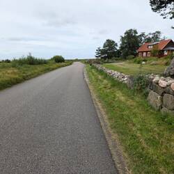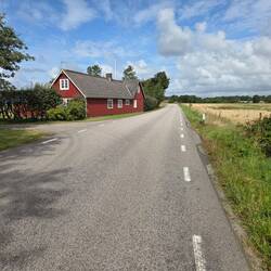 Ich fuhr zunächst vorbei an kleinen aber zierlichen Häusern, die sich an einer langen Straße aneinander reihten. Unvermittelt hörte die Stadt auf und eine ländlich geprägte Gegend entfaltete sich vor mir. Ich fuhr Kreuz und Quer durch teils gemähte, teils ungemähte Felder, in die vereinzelt Gehöfte eingestreut waren - Häuser und Scheunen im schwedischen Landhausstil, meist mit Fahnenmast und Schwedenfahne. Viele boten Produkte wie Blumen, Eier oder Milch mittels Kasse des Vertrauens an.