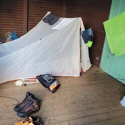 Nous mettons la tente sous un abri du gîte car leRead more