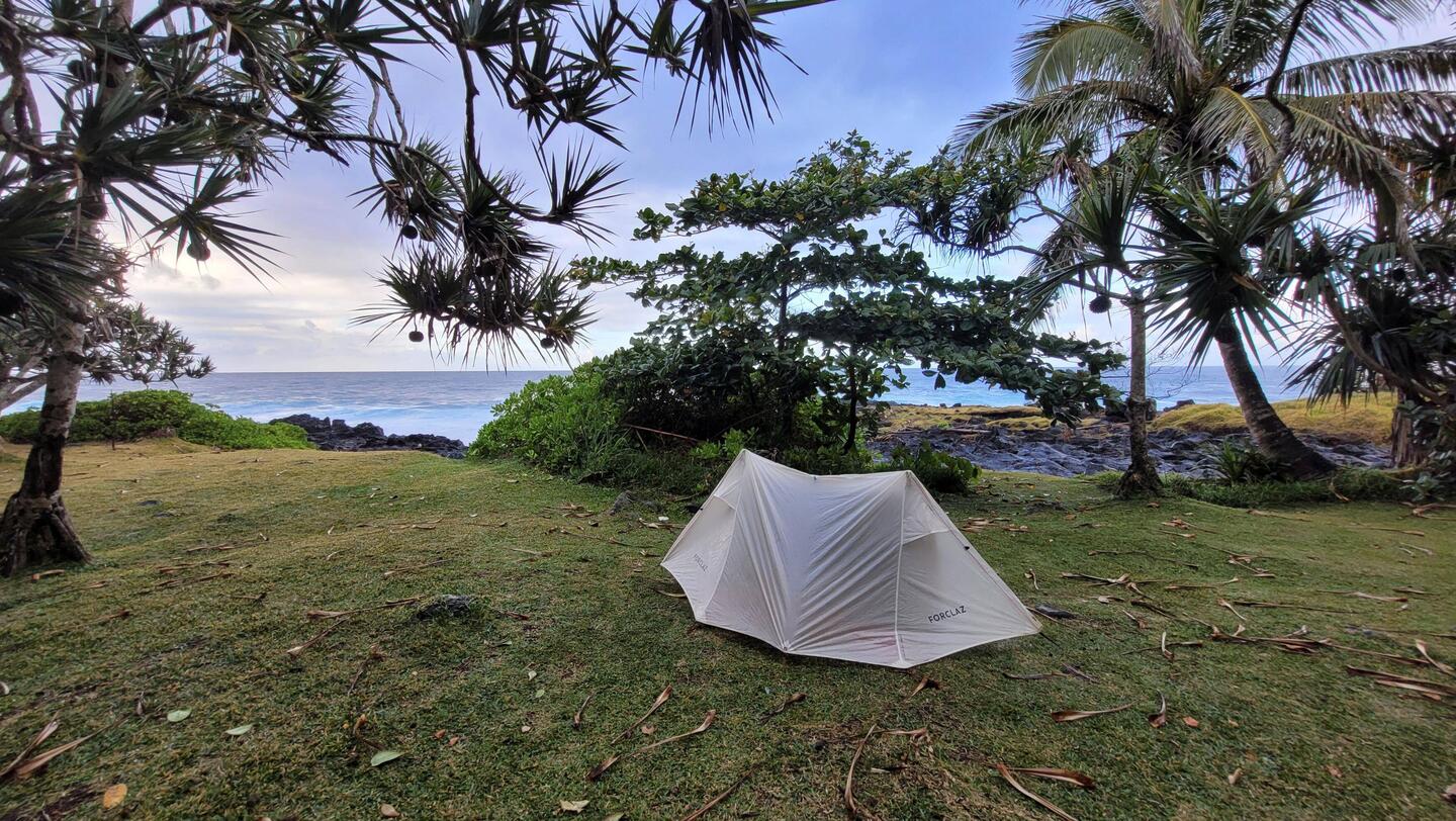 Lever du bivouac face à l'océan agité sur Basse vallée.