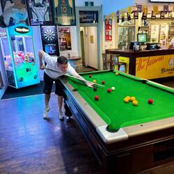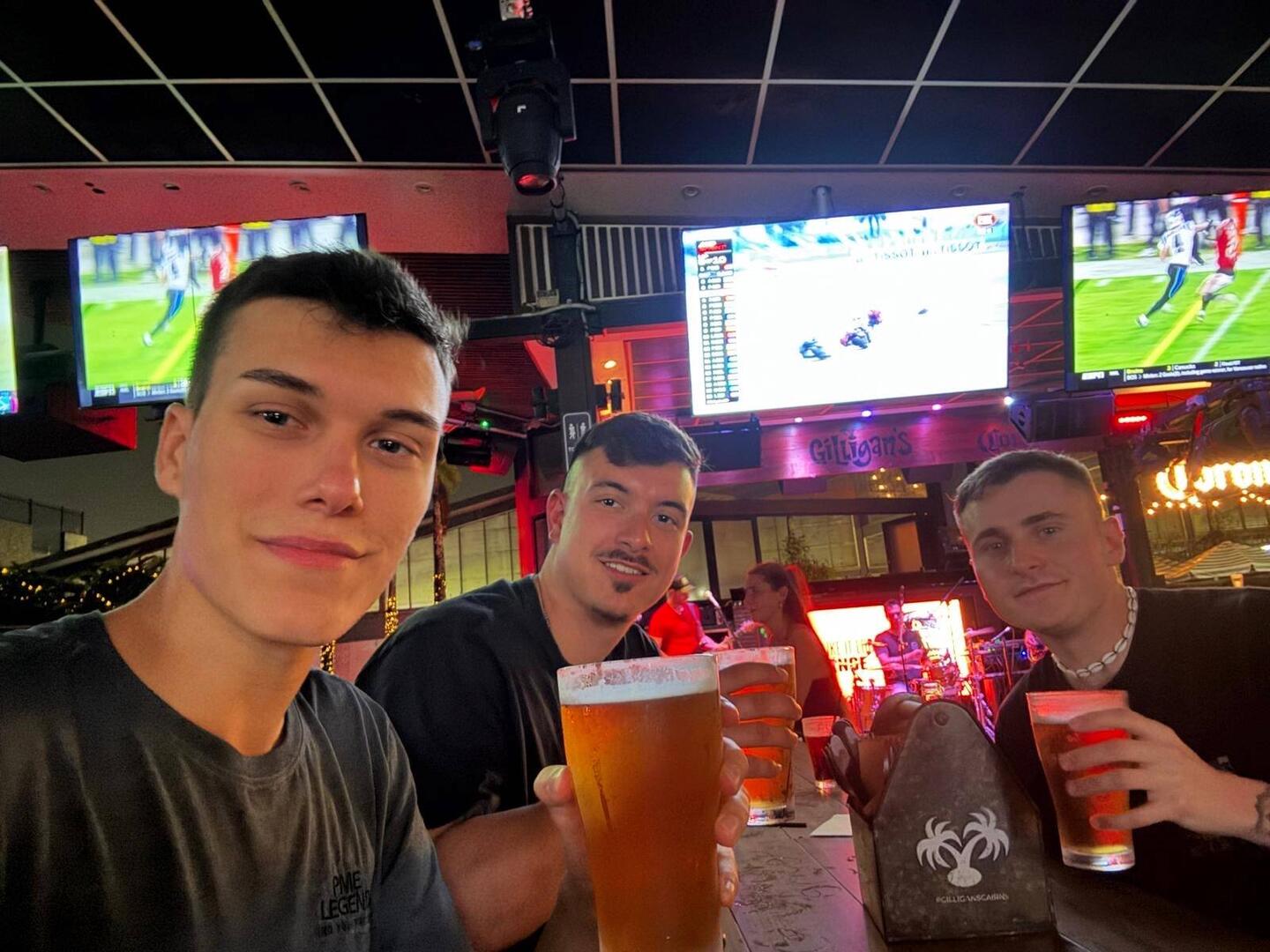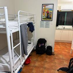 Wir haben ein 4-Bett-Zimmer bezogen und erst einmal gemütlich das eine oder andere hopfenhaltige Kaltgetränk genossen. 🍻 Zum Abendessen gab es dann unser allererstes Chicken Parmi, das wir uns brüderlich geteilt haben. 🍗🧀🍟 Ein gelungener Einstand!