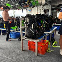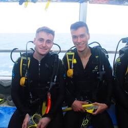 Heute ging es schon super früh los: Um 06:45 Uhr holte uns der Bus ab und fuhr uns nach Port Douglas. 🚌💨 Dort angekommen, ging es direkt aufs Boot. Während der ziemlich langen Überfahrt wurden wir ausführlich in die Tauchausrüstung instruiert. ⛴️📋