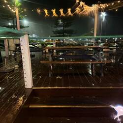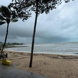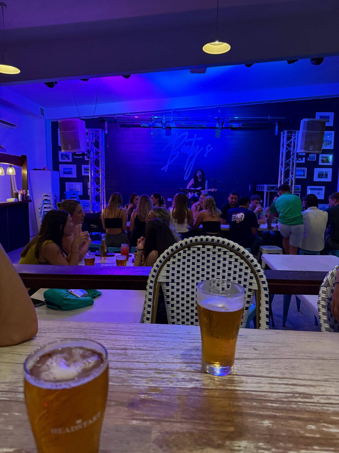 Das Wetter ist wirklich miserabel – der angekündigte Zyklon ist auf Land getroffen. Alle Hostel-Gäste haben sich in der Bar versammelt, wo es gerade Live-Musik gibt. 🎤🎶