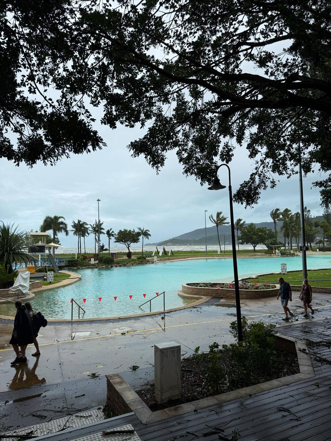 In Airlie Beach angekommen, begrüsst uns die Küste leider noch ziemlich verregnet... 🌧️ Aber wir lassen den Kopf nicht hängen! Wir sind bereit für das Paradies und hoffen inständig, dass die Sonne bald wieder die Oberhand gewinnt. ☀️🤞