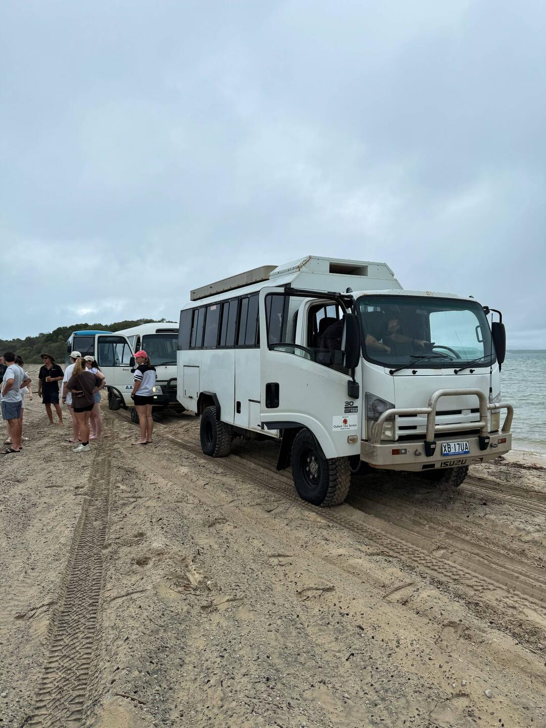 Heute Morgen ging es bereits um 07:30 Uhr los: Unser Ziel war Fraser Island, die grösste Sandinsel der Welt! 🌍✨