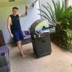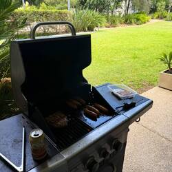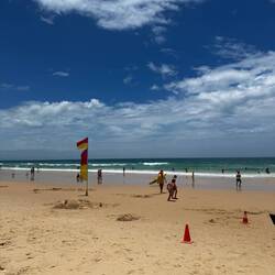 Zur Abkühlung beschlossen wir, ins Meer zu springen 🌊. Es hat unglaublich Spass gemacht, sich in die grossen Wellen zu stürzen 🏄‍♂️. Nach dem Badespass gab es zum Mittagessen ein gemütliches BBQ direkt bei unserer Unterkunft 🥩🔥.