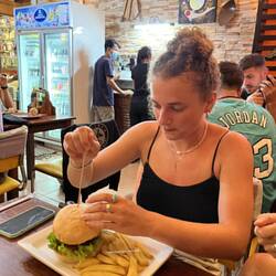 יצאנו לאכול ארוחת ערב, החלטתי להצטרף אליהן כי הרגשתי יותר טוב וגם אין דבר שיגרום לי להרגיש יותר טוב מאשר לרומם את מצב רוחי עם קצת צחוקים ואוירה. הזמנתי שוב אורז לבן בתוספת פחית קולה והשתדלתי להכניס כמה דברים לבטן. הבנות זללו בשמחה את האורז קשיו נאטס וקצת סיפקו את דודאת ההמבורגר שלהן.