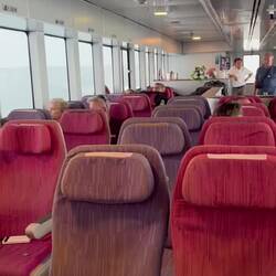 לקחנו את התיקים עברנו לעוד מסעדה קרובה למזח שהיא חד משמעית גדולה למידותיו מבחינת מחירים אבל רצינו סתם לשבת במקום אחר להוריד פאניקה מסחיבת המוצילות עד שתגיע שעת המעבורת ושם כבר נשברתי ולקחתי קרואסון שקדים כי הרגשתי שאני מסוגלת לעמוד בזה ואכן כך היה.