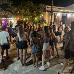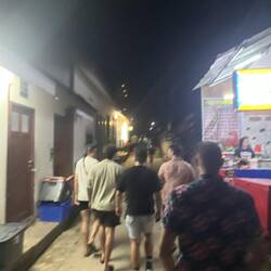 היינו בשוק לא הבנו מה קורה ומזה כל האנשים האלה שהולכים ככה אחד אחרי השני. הם אמרו תצטרפו הולכים כולם לבר. זה גם ככה הדרך שלנו לואפל כי יש רק דרך אחת בריילי אז הצטרפנו והתחלנו ללכת עם התהלוכה. בדרך הגענו למסקנה שכנראה כולם אמריקקים משועממים וחסרי ריגושים…
