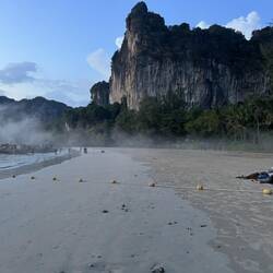 הגשם כבר הפסיק אז חזרנו לחוף לראות את השקיעה, בדרך עצרנו בסוכנות טיפוס והחלטנו שזה הרגע לסגור לנו טיפוס למחר בבוקר. תמר וקרן אמרו שילכו לסוכנות לסגור מחר בבוקר והיה נראה שהן לא בענין שלנו אז החלטנו לסגור בלעדיהן ובלי ההנחה שקיווינו לה. בסוכנות הייתה בחורה תאילנדית בשם ג’יין, היא הייתה ממש מקסימה וחברותית דיברה אנגלית מעולה והרגשנו שעשינו החלטה טובה לסגור פה טיפוס. לפני שעזבנו היא אמרה משהו על צילומים של סרט הוליוודי פה בריילי, זה לא היה כל כך ברור חשבתי שהיא מספרת על זה שפעם צולם פה סרט, או שלאחרונה צילמו, אז הנהנו בנימוס אמרנו תודה והלכנו לשבת בחוף לשקיעה. שיחקנו שש בש ופתאום אופיר אומרת תראו הם מצלמים שם משהו. הרמנו את העיניים מהמשחק כי ממש לא היינו מרוכזות ממה שקורה סביבנו וגילינו שממש לידינו מצולם ברגע זה סרט! זה היה מלהיב אבל תכלס אי אפשר להתקרב אז המשכנו לשבת ובסוף השקיעה חזרנו לחדר למקלחות כדי להתייפייף ולבוא חגיגיות לקראת הואפל של היום בערב.
